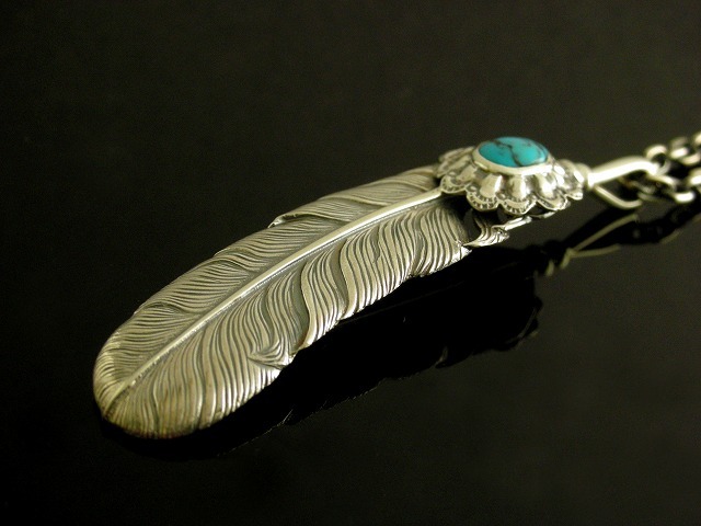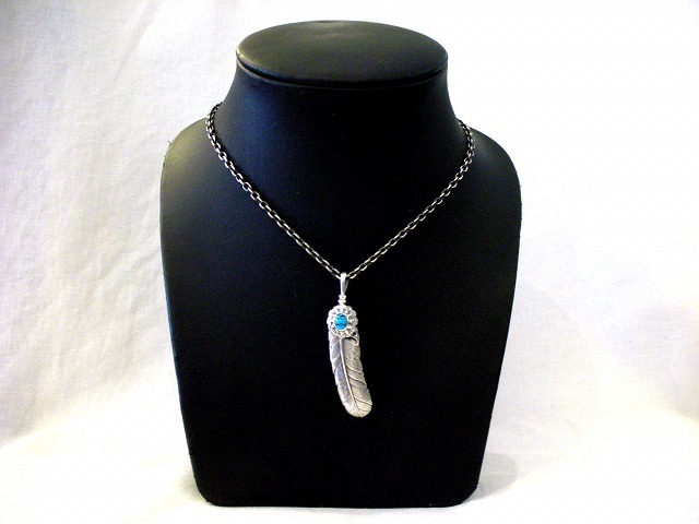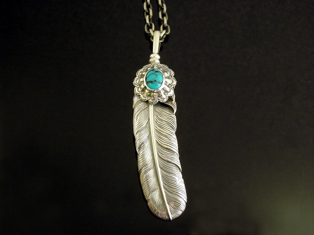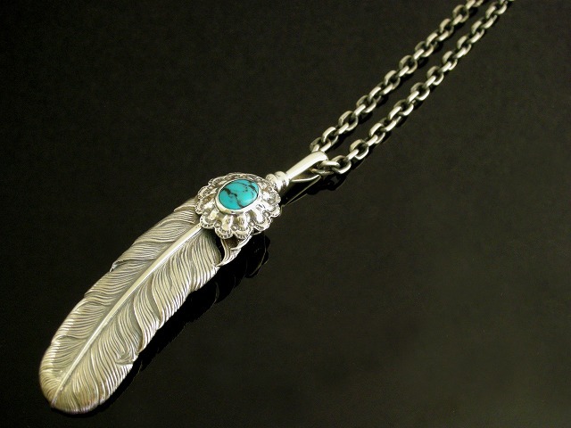 【送料無料】シルバーフェザーネックレス Lサイズ KI-142 ターコイズ (チェーン付きセット) 【K-SMITH】