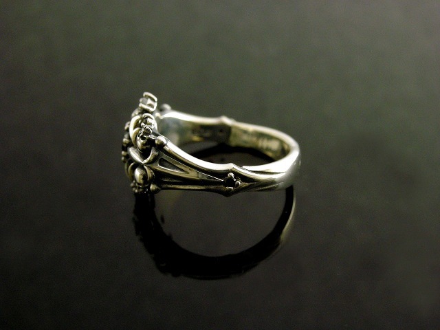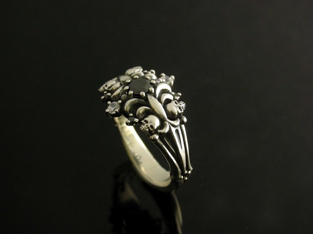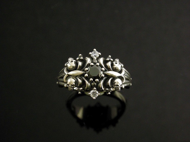 ユリの花をモチーフにしたリングに4か所極小のスカルを付けるという、