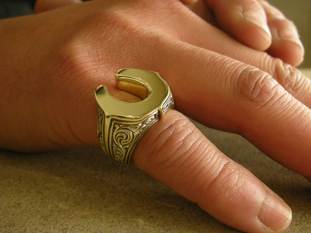 ボリュームのある馬蹄(ホースシュー)のピンキーリング。