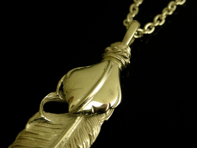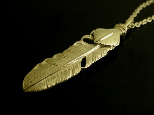 【ネコポスOK】メンズ シルバーフェザーネックレスMサイズ R-59ハートフェザーシルバー(チェーン別売り)【GALLION】