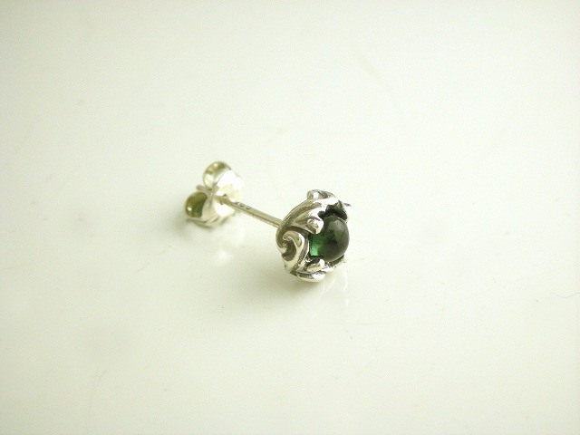 【ネコポスOK】シルバー唐草ポイントピアス グリーントルマリン 【GALLION】